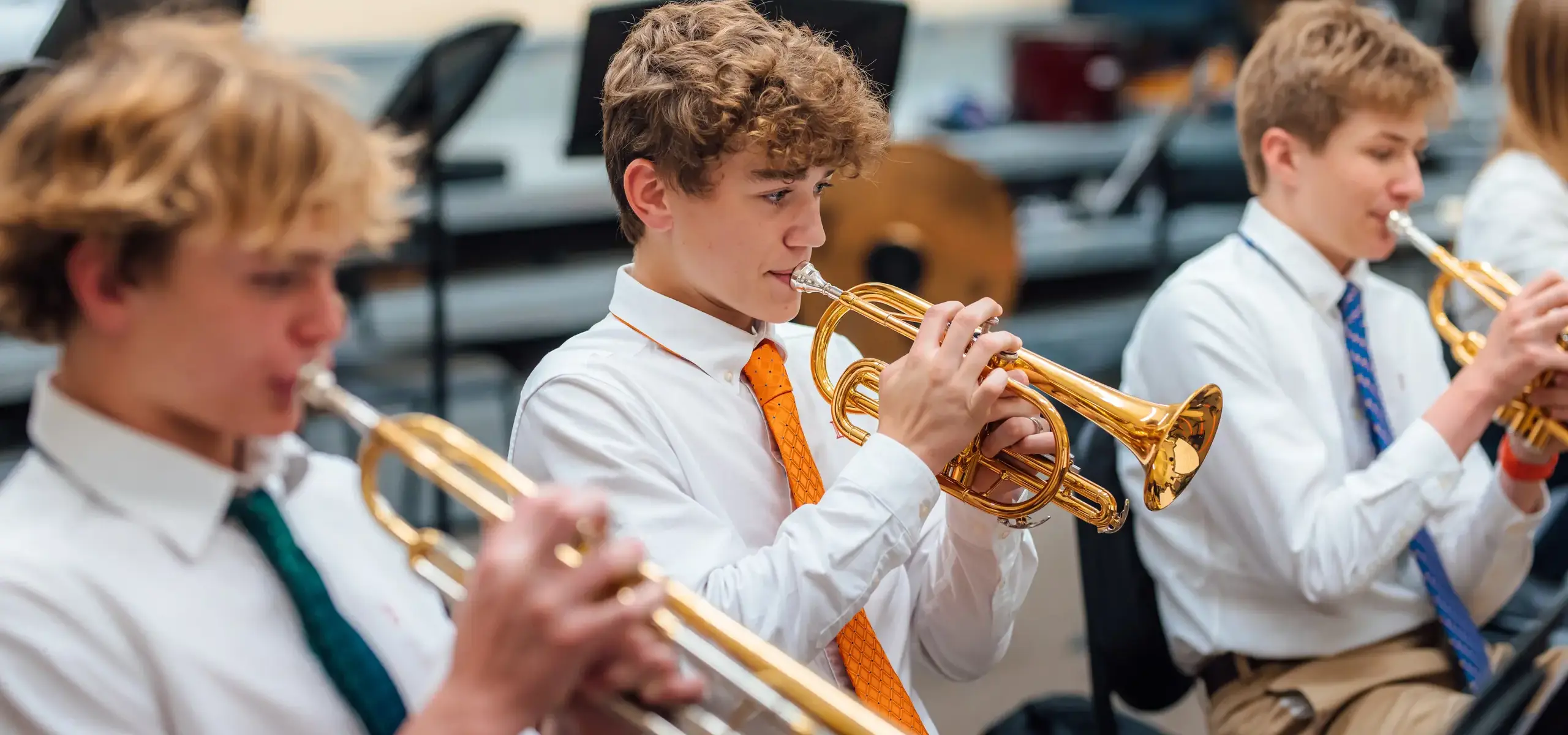 This Honors credit course functions as a select auditioned group of students that demonstrate high interest and skills in instrumental music. Students in this section rehearse and perform alongside the Crimson Band students, serving as section leaders and models of performance. Students will learn performance techniques, music theory, and historical concepts of various genres of music. Focal points in this ensemble will include proper instrument techniques, development of quality and characteristic tone production, comprehension and performance of major and minor scales, and learning to perform in solo and ensemble settings. Members of this ensemble will perform in pep rallies, sporting events, festivals, and school concerts, and may be invited to provide special music for Dunham-sponsored events (1 credit).